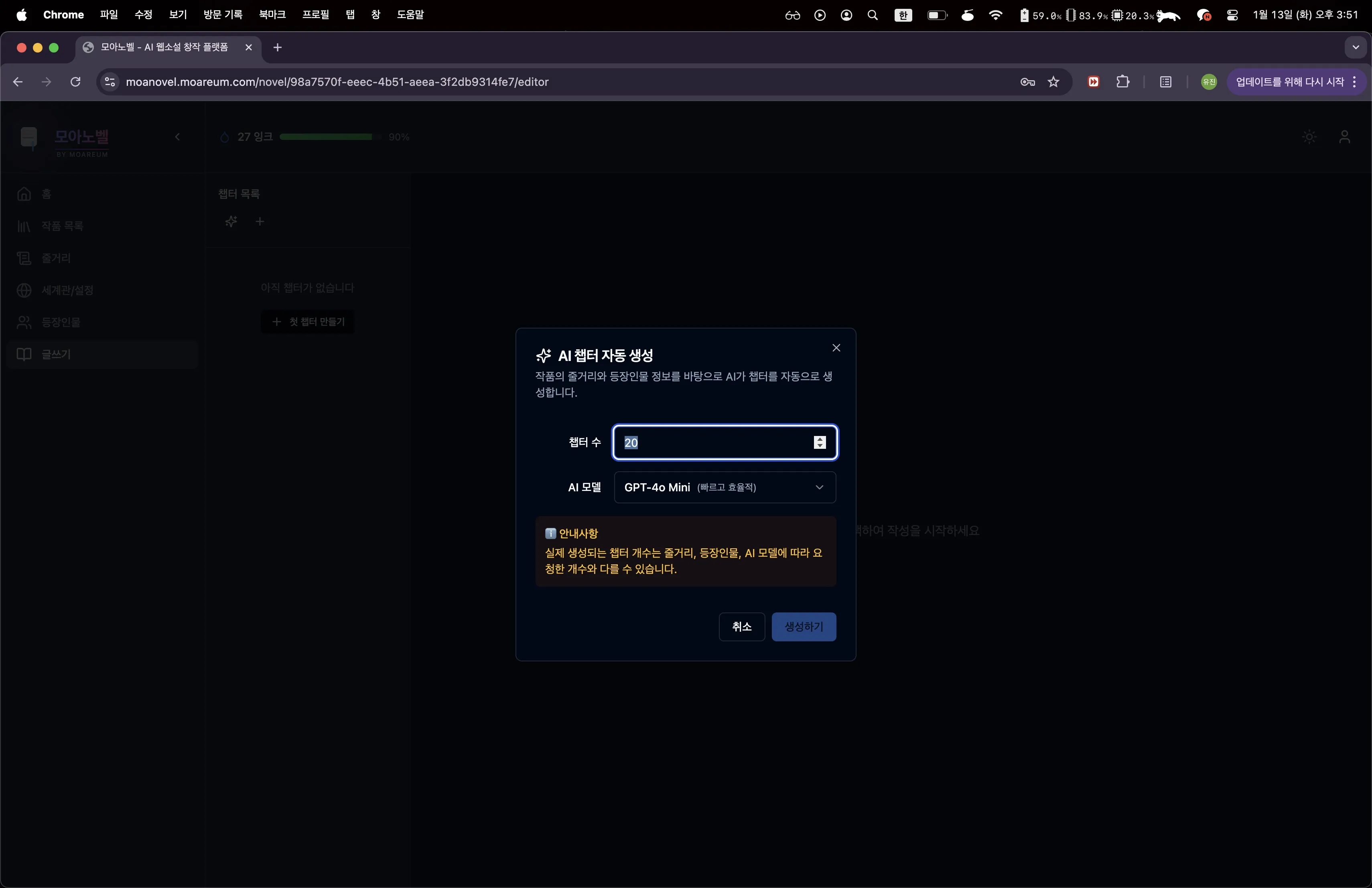 - 초기 모아노벨: AI가 줄거리 기반으로 챕터와 본문 자동 생성