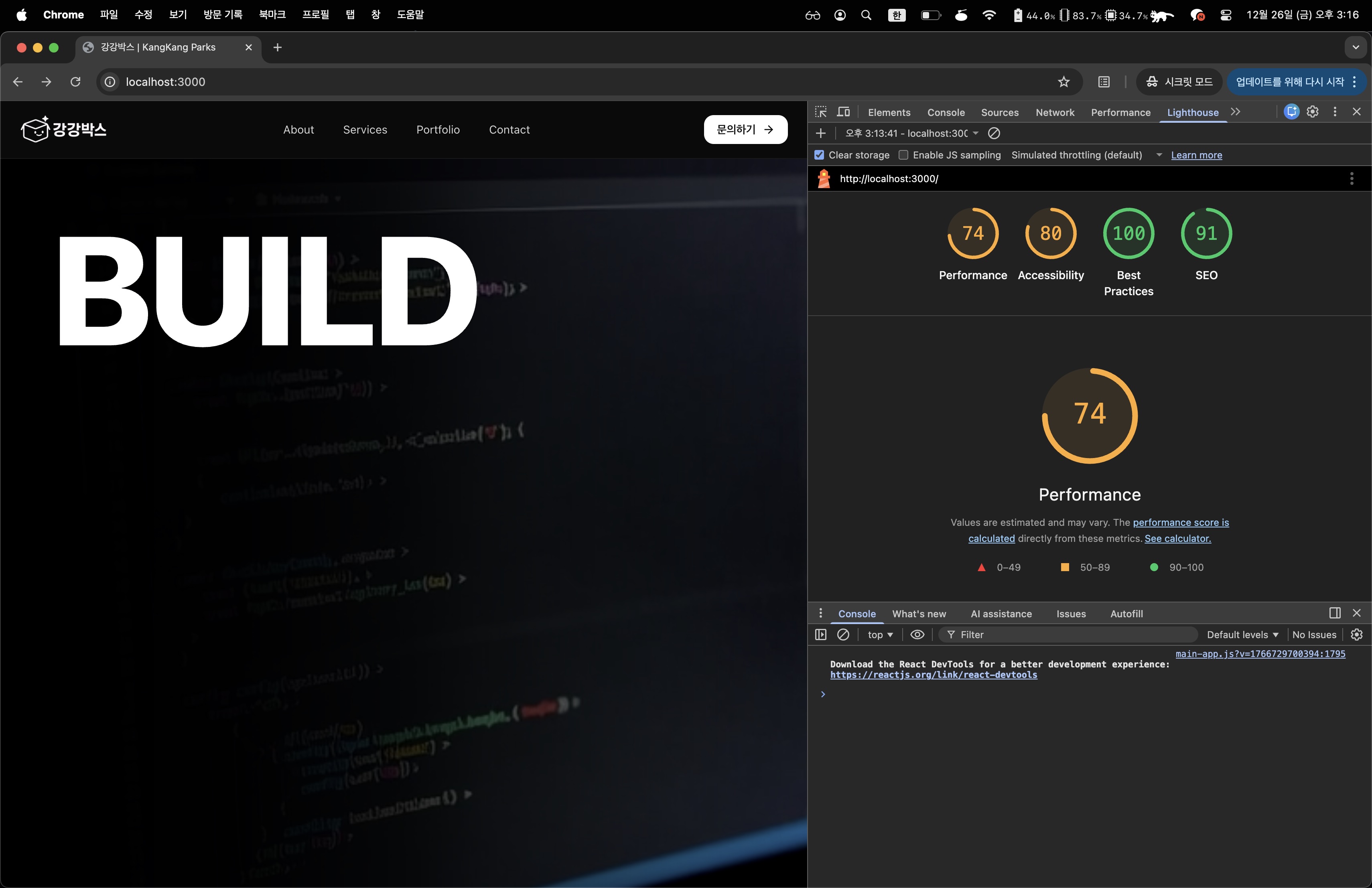 최적화 작업 후, 다시 Lighthouse를 실행했습니다.